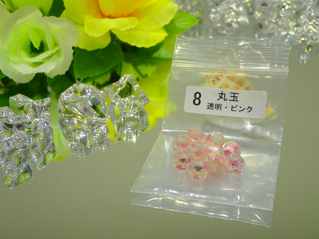 | 製品名: | 夜光ホタルガラス 丸玉 透明・ピンク 8mm玉 |