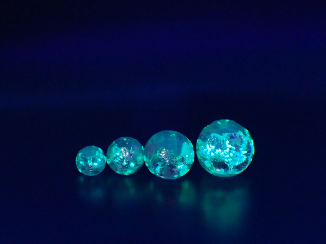 「ホタルガラス」とはホタルが瞬いているような幻想的、かつ神秘的な光を放つことから、いつのまにか「ホタルガラス」と呼ばれるようになったトンボ玉の一種です。