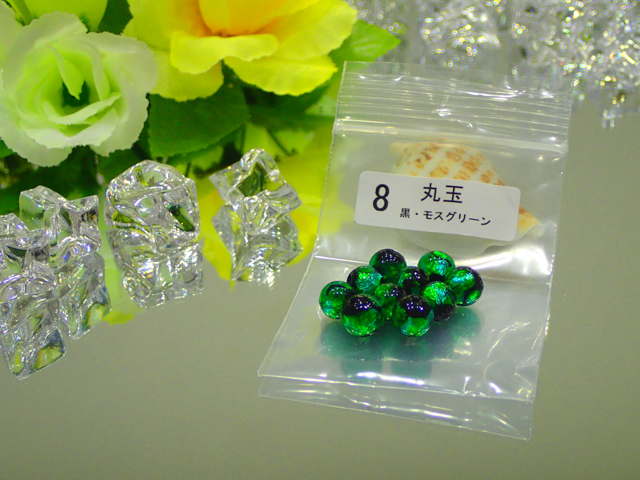 | 製品名: | 夜光ホタルガラス 丸玉 黒・モスグリーン 8mm玉 |